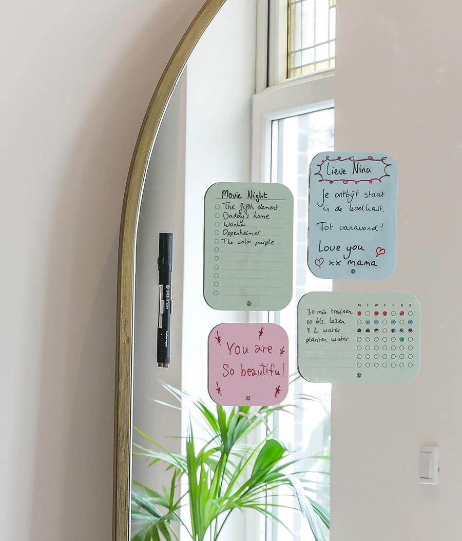 maandplanner + sticky notes incl. pennen- en reinigset). Makkelijk schoon te maken. Echt heel fijn om mee te werken, we zijn er erg blij mee en het staat ook mooi in huis. De webshop zelf is ook overzichtelijk en duidelijk, klantenservice is top. Als vrienden of familie over de vloer komen maakt het indruk en sommigen gaan ook de planners bestellen bij OurGreenStory. Ik kom zeker terug voor meer producten in de toekomst!