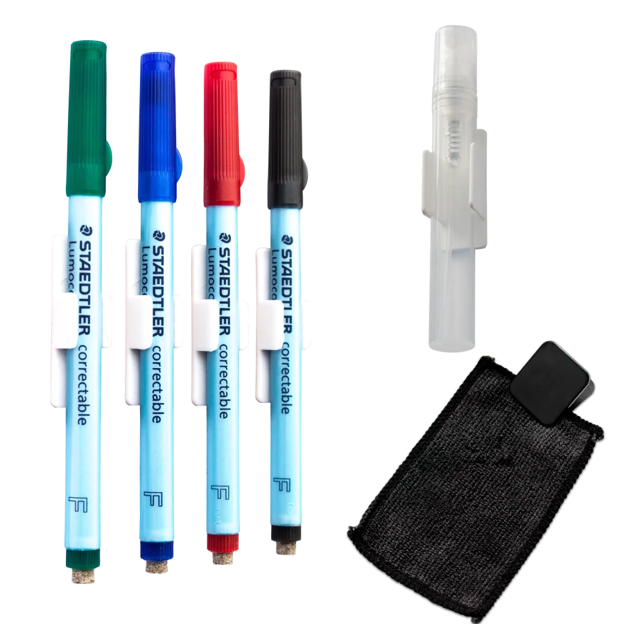 Schrijf moeiteloos met Staedtler whiteboard pennen en wis alles uit met een beetje water, zelfs na een lange tijd. Zo heb je altijd een schoon en fris schrijfoppervlak, verminder je afval en bespaar je kosten.
